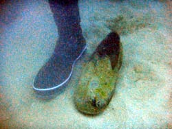 はいどうも、タクです。今日は井口さんと一緒に、地形の変わった砂辺でFUNダイビングです。まずは右下の砂地へ。ちぎれたソフトコーラルの破片がそこら中に転がってました(涙)ふら〜っと泳いでると、多分33〜34cmくらいのビッグな靴が落ちてました!でかい!!オレの足が29cmなので写真で見ると分かりやすいです。(右の写真参考)そこになにか棲み付いてくれたら面白そうです♪二本目は左側の砂地へ。ここにはも〜〜すんごいデカイ土管がドッカーーンって感じで落ちてます(笑)人が通れるくらいです!!長さはだいたい7〜8mくらい??かな。そこにもなにか棲み付いてほしいな〜〜って、なんとなーく思いました(笑)ハゼも探してみましたが、いるのはダテハゼのみ!!いつもと変わらないこと、プライスレス!!!帰りにはジョーフィッシュも見つけましたが、井口さんがわかんなかったらしく、三本目でリベンジ達成です。それが右の写真♪♪ヒョコヒョコ顔出してて可愛いヤツでした(^^)今日は色々発見できましたね。砂辺はまた、新しい地図を描いたほうがよさそうですな。ではでは飲みますか!!! |