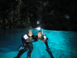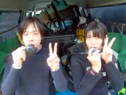 はいさい!本日久し振りにマエダ岬青の洞窟体験ダイビング担当のともだよ!本日8時から遊びに来てくれたのは、9月にも遊びに着てくれた、やすくんときょうこちゃんだよ!2人ともなんとライセンス持ってるんだよ!でもカードを無くしたので今回も体験ダイビングだよ!だからとっても上手で、呼吸の練習や復習をしたらすぐに海だよ!とっても楽させてもらったよ!で!今回は青の洞窟へ、アーチをくぐったり、洞窟探検したり、今の時期は水面まで上がって光る青のポイントを2箇所見る事が出来るし人も少ないので少しお得なのだ!餌付けしたり、水中ビデを撮ったり、キョウコちゃんのう0こ見つけたり楽しかったね!次回は是非是非ライセンス復習編に挑戦してみてください。でライセンス再びゲットだよ!2人のコメントは やすくん:今年2回目の沖縄!!!雨だったけど、やっぱり最高でした。今年はライセンスを持ってボートに乗りたいです。 きょうこちゃん:2ヶ月ぶりにまた、きました。ヤミツキです。沖縄の海最高です。 |