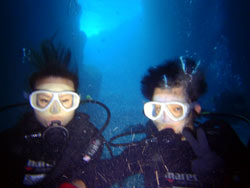 ども!タクです。今日は真栄田で体験ダイビング担当です♪今回のゲストは、ドキドキ初ダイビングのお2人(^^)トモちゃん、チカちゃんです。耳抜きとか呼吸に不安になりながらも、いざ水に入るとちょ〜〜笑顔!!いや、変顔!!笑)笑顔なんだけど変顔!!洞窟は人が少なくて貸し切りでした☆2人ともフライングしなかったね(笑)エサあげてるときに誰かさんがビビリまくってたけど、全部ムービーで撮っといたよ(爆)そんなスットコドッコイな2人から感想も頂いてます〜。 ともちゃん&ちかちゃん☆陸上で練習したかいがあって水中では凄く楽に呼吸出来ました。ただ、笑うと一瞬しんどくなりますね。想像してたよりも視界がクリアで魚とかの観賞を楽しむ事が出来ました。足のフィンがとれた時は焦りましたが、落ち着かせてくれてありがとうございました。洞窟とてもキレイで楽しかったです。 |