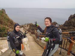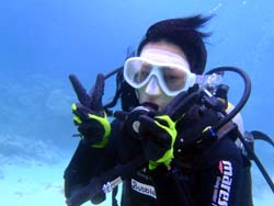まいど〜ひろあきです!!本日2組目のゲストは体験ダイビング3回目のアイリちゃんです☆説明もそこそこに早速海へ!!練習をしようとするとなぜか大爆笑しているアイリちゃん(笑)「海に潜るとなぜか笑っちゃうんです」と。。。そんな感じで水中でもヒトデをアクセサリーにして遊んだり、フィンがたまたま脱げたのでそのまま水中かけっこをしたり^−^ほぼファンダイブのような感じで遊んできました!今度は是非ライセンスをゲットしてね☆^−^感想で〜す!! アイリちゃん:今日は3回目のダイビングでした♪このお店は初めてですが、とっても良くしてもらい楽しいダイビングができました^−^海がすごくキレイでカサゴなど、非現実的な1日が送れ、もう仕事したくないです(笑)ずーっと海にいたいな〜☆寒さよりも海!私は海が大好きなので嫌な事も忘れられるくらい沖縄が大好きです♪♪次はライセンス絶対とります☆☆ありがとうございました^−^ |