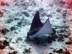 今日と言うほど素晴らしい慶良間はないでしょう・・・。天気は晴れ、海況もそこそこいい感じで出港♪本日のメンバーは、カトノブさんことノブさん。アシスタントにJACK。まず1本目はアリガーケーブル☆透明度30mオーバー!!いい出だしです。ヒメジやアカマツカサが群れててノブさん嬉しそうでした(笑)後半にはタコも発見して、クマノミの子供も可愛くて・・・・・そんなことはどーーでもいいんです!いいですか?出たんです!!ヤツが出たんです!!!2本目は野崎。メインの根の沖側に出ると、やや流れ始めました。むむむっ?!と思いながら泳いでると後ろから、そんなに鳴らしますか?!ってぐらいの鈴の音が・・・。振り向くとJACKが何かを指差して・・あああぁぁあーーーーーーーーー!!!!!!!!!!マンタ〜〜〜〜〜〜!!!!オレは泳ぎました、なにも考えずに。一枚のじゅうたんに向って・・・。そんなに長く見ることはできませんでしたが、確かに見れました!ありがとう、海!ありがとう、皆!ありがとう、マンタ!しかもその後には亀も出ました。腹いっぱいの1本です♪三本目はタマナーファームでしたが、コクテンフグがメインでしたな(笑)カメもいたけどすぐ逃げちゃったね〜。しっかし2本目が良すぎてね〜(笑)のんびり泳げたので良かったですけどね☆はい、そんな慶良間でした。初マンタでした。次回はもっと近くで見たいですね(^^)また行きましょう!!! |
