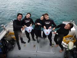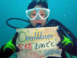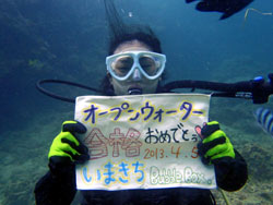 はいはーい!ども、りょーけんでっす。今日はOW講習ラストに行ってきました〜。今回3日間の講習を終えて見事OWダイバーになったのは新潟からやってきたのんちゃん!とりあえず1本目、2本目はスキルが残っていたので消化しに行ってきました。全体的にかなり上手でしたが、みんな大嫌いなマスク脱着に手間取ってましたね。何とか全スキルを終わらせて3本目は遊びのダイビングへ!ニモとのツーショットを撮影したり、ウミウシを見たりしてきました〜。最後は恒例の卒業試験!今回のお題はマスククリア全没。水を入れるまでが長かったけど、入れた後は一瞬でした(笑)そしてのんちゃんOW合格オメデト〜!!今回色々と壁を乗り越えてがんばったのんちゃん。また暖かくなったら潜りに来てね〜!! |