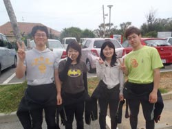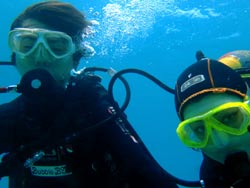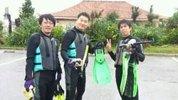 はいさーーーい、せーやです!!今日は沖縄らしからぬ天気と気温、ちょっぴり寒いっす!w今回はマエダ岬の裏のビーチでダイビングとシュノーケルをしてきました。一緒に潜ってくれたのは、京都からお越しの岸田さんファミリー☆元気な子供2人(のりちゃんとゆうかちゃん)と元気なおばあちゃん(キミエサン)をまとめるおかあさん(みっちゃん)♪最初のダイビングもみんな練習でもとっても上手にこなし浅瀬での練習もすんなりでしたね!ちょっと流れがあって泳ぎにくかったけど、魚ともまじかに触れ合えてよかったね^^みんなで集合写真も撮ることもできていい思い出になったんじゃないでしょうか??☆シュノーケルは上からですが、ゆっくり魚や海を見る事ができていろいろな魚も紹介できることができました!!みんなから感想もいただいています。 のりちゃん「最初は心臓がばっくんばっくんで緊張しました。でもお兄さんとお姉さんがいて緊張がほぐれました!」 きみえさん「寒かったけど、楽しかったです。今度は天気のいいときに来たいです。」 ゆうかちゃん「最初は魚が怖かったけど、いろいろな魚がいてきれいだったので楽しかったです。」 みっちゃん「初めてのダイビングとシュノーケルでとても緊張しました。(特にダイビング)子供と一緒にできて本当にいい思い出になりました。子供はマンツーマンでついてもらえて安心できました^^あいにくのお天気で青の洞窟へは行けなかったけど、今度は青の洞窟に行くのにまた沖縄に来たいです。」 |