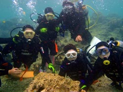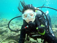 はいさい!!ひろあきです!!今日は雨です!!久し振りの大雨になりました。雨も風情があってたまにはいいもんですね^−^:今日遊びに来てくれたのは中学生のかわいい女子のゆうかちゃん!!初ダイビングに挑戦です☆海猿を見て予習はばっちりの様子で説明の時からワクワク顔がとまりません♪やっぱり好奇心があると水中もスムーズです^−^途中からは手を離しても自分でガンガン泳いでいて、まるで人魚のように素早かったですよ((笑))ニモの熱烈なアタックを受けたり、水中の流れ星ヒトデと一緒に記念撮影したりと初ダイビングを満喫してきました♪今度はライセンスに挑戦してみよ〜^−^またお待ちしております☆★ ゆうかちゃん「私はダイビングをするのが、初めてで少し不安があったけど、海の中がきれいで気持ちよくってすごく楽しかったです!サンゴが柔らかくて硬いと思っていたので驚きました。お魚にエサをあげるとき、すごい速さで寄って来たので驚きましたが、近くで見れて良かったです。またダイビングしたいです。ありがとうございました!!」 |
