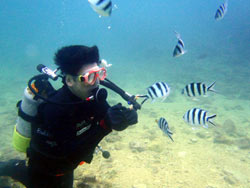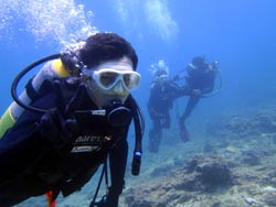 はーーい、せーやです!!本日3本目砂辺体験ダイビング行ってきました〜〜。天候はくもりですが、砂辺の海況なかなかいいです♪一緒に潜ってくれたのは、元気な男性2人組み☆ゆういちさんは初ダイビングでゆうきさんは前回一度ダイビング経験がありそこで耳抜きがうまくいかなかったよだったので今回は潜降もゆっくり行い耳抜きの説明もかなり細かく説明しました^^2人とも水中に慣れるのが、早くいろんな所に連れていけましたよ!今回はニモに会って水中で一緒に写真を撮ったり、ソフトコーラルの上をみんなで泳いで眺めました☆2人から感想もいただいてます。 ゆういちさん「感動しました!!ありがとう!」 ゆうきさん「本当に楽しくって人生初めての経験ができました。次回はぜひライセンスを取りにきます。ありがとうございました。」 |