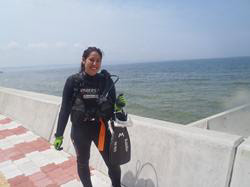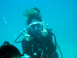 はいさ〜〜い、せーやです!!今日は天気がいいのがまだまだ続いちゃいますよ〜〜☆今日は急遽遊びに来てくれた方、カリンが砂辺NO,1でダイビングしに来てくれました^^沖縄に親戚がいて、少し沖縄に住んでいたいた時期もあったみたいですが、今回初体験ダイビングでした!!練習はかなりスムーズで楽々♪海に行くと少し緊張がこみ上げてきたのか、ちょっと体硬かったですね^^浅瀬は少し濁っていましたが、奥に行くと逆に透明度がかなりよくて水中は飛んでるような気分になりました☆ニモにも会いに行って、途中ハリセンボンにも会いましたね!カリンから感想もいただいています!! カリン「体験はとても楽しかったし、いい感じできました。一番大変だったのは、マスクのことだった。水が入ったとき私はちょっと心配してて、リラックスすることができなかったけど、せいやさん手伝ってくれたのでよかった^^すごいすばらしい経験になった!!」 |