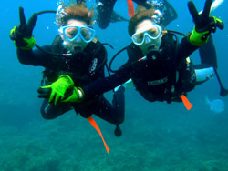 はいさ〜〜い、せーやです!!本日二回目青の洞窟ダイビングへ行ってきましたよ〜〜♪今回がっつりコースから青の洞窟ダイビングへ変更しました。一緒に行ってくれたのは、東京都からお越しのなるちゃんとあいちゃん(ゴーヤ)のお2人☆練習は上手だったのですぐさま海へ♪海の練習でもすぐに水中に夢中になっていたのですぐに海に慣れてバンバン1人で泳げそうな感じでした^^魚がめっちゃ寄ってきていたので、最初は喜んでいましたが、ゴーヤがマジでびびってました♪w餌付けも魚がいすぎて困ってたね^^透明度もよかったので空を飛んでるかのような感じで気持ちかったね☆最後は2人共一人で泳げるくらい上手になっていました!!2人から感想もいただいています。 ナルちゃん☆初めてでドキドキしたけど、きさくに話してくれて、誘導もすごく安心できる感じで、楽しかったし、ここでやれて良かったです。また沖縄に来たらよろしくねー♪お魚がたくさんいて、またダイビングしたいです。 ゴーヤ☆すごくわかりやすくて、たのしくダイビングできました!!ありがとうございました。 |