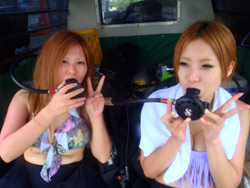 はいさ〜〜い、せーやです!!あ〜〜〜夏、夏、夏!!女の子は特に日差し注意だね!今日は沖縄に移住したさーやと大阪から来てくれているいつも一緒のみねっち☆ヘドにどうしても行きたい2人ですが、今日は瀬良垣でさらなる高みへ行ってヘドに行ける強い女の子になるため頑張ります♪今日は昼からみねっちが大阪からやってきてそのまま瀬良垣まで直で向って行きました!ポイントはオーバーヘッドロックとミニドリームホールです!始めにオーバーでは入って早々ドロップにスズメダイがかなり群れていてきれいでしたね☆やっぱり地形ポイントはダイナミックでかなりわくわくします。穴には大きなネムリブカが興奮して穴の中をグルグル周っていて僕達の近くをさーーーっと通ってきたのでみんなで顔あって大興奮^^写真も近くで撮れましたが、汗ってブレブレでした♪W透明度もかなりよくてディープに行っても上も横もかなり見えましたっよーー!1本目と2本目の間でみねっちがゲロッキーで心配でしたが、帰りには復活してたね。そして今日はなんとそのっままナイト☆初ナイトの2人ですが、やっぱりアドベンチャーはいいね〜〜♪甲殻類からフグを優しく捕まえたり、コブシメの子供を間近で写真取れたりできましたね^^そして今度はさーや一点集中してたら酔ったみたいでダウン!!も〜〜う2人共体調悪くなるから心配でした^^明日は復活してね!!! |