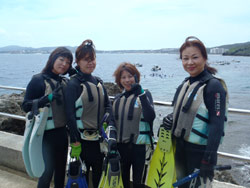 こんにちはjackです^^☆昨日今日と良い天気が続いております♪そんな今日まず1発目は女性4人組です!!経験ある方ばかりで練習も浅瀬もスムーズにいきましたね*^^*真栄田の魚の多さにみなさんビックリしていましたね!!洞窟内も、そんなに混んでいなかったのでスイスイ♪キレイなポイントでも、たくさん写真を撮りました!!餌付けの時は、みんなテンション上がってましたぁ〜(笑)魚に囲まれましたね!!喜んで板だけて私も嬉しいです!!みなさん笑顔が素敵でした!最後に感想載せますね♪ かなこさん:魚がたくさんいて、びっくりしました。スノーケルでも充分、大満足。 とよこさん:きれいでした。 ともみさん:魚のエサやりが、とても楽しかったです。最後、何も持たずに1人で泳げたのも楽しかったです。 ひろこさん:青の洞窟が最高!インストラクターの方が親切でフランクで楽しかったです。また来ます! |