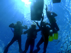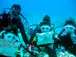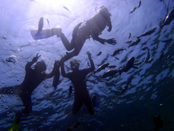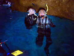 はいさ〜〜い、せーやです!!暑い暑い沖縄で青の洞窟ダイビングに行ってきましたよ〜〜今日は家族みんなで遊びに来てくれた吉田さんファッミリー☆みんな初ダイビングでしたが、練習はなんなくこなしすぐさま水面へ!!水面に行くとやっぱり少し緊張しちゃいますね!でも慣れるのも早くバンバン泳いでましたよ〜〜^^水中では魚が群れて皆に向ってきてホントにずっと一緒に泳いでいる感じでした♪青の洞窟では、夜行性の魚もゆっくり眺めて青の神秘も目の当たりにしましたね☆ママがそこでちょっと疲れてリタイヤでしたが、3人はそこから自由に泳いでいましたよ♪みんなから感想もいただいてます。 ママ「初体験、とても感動しました。途中でリタイヤして残念だったけど、親切に教えてもらって嬉しかったです。」 まりちゃん「初めてで最初はどうなるかと思ったけど、海の中で色んな景色が見れて感動しました。機会があればまたやりたいです。親切に教えてくれてありがとうございます!」 父「初体験、とっても楽しかった!!もう一度やってみたい!! 大ちゃん「初体験やったけど、とっても楽しかった。またしたいと思いました!!」 |