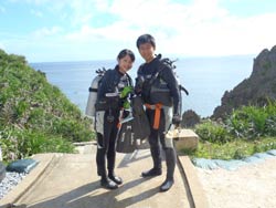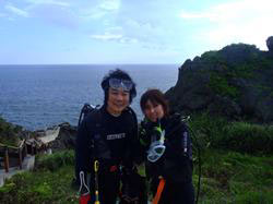 はいさ〜〜い、せーやです!!いや〜〜さすがに連日天気よかったのが、今日でストップしてしまいましたかあ〜〜。今日は前回もBBで潜ってくれたしゅんさんと彼女のゆっちゃんのお2人です♪今日は真栄田名物の青の洞窟ダイビングにいってきましたが、曇りの天気も泳いでいると晴れてきてめっちゃきれいだったね^^2人共全然海に行ってもドキドキせず動じてなかったですよ☆洞窟は外の光が差し込んで海の中は神秘的に輝いてました!夜行性の魚も多かったですよ。2人からも今日の感想もいただいてます! シュンさん&ユッちゃん☆天気がどうなるか心配だったけど、どうにか潜ることが出来て良かった。やっぱり想像以上に魚もキレイ。青の洞窟に関しては、初めて水中を散歩して、洞窟の構造やそこにいる魚も見ることができたのでとても満足です。多少ブランクもあり2人共少し不安でしたが、シオンさんのサポートで安心して、そして楽しくダイビングすることができました。本当にありがとうございます(^^)次回来た時は同じときはお互い同じ「佐々木」として来れれば最高です(^^)また、よろしくお願いします♪♪ |