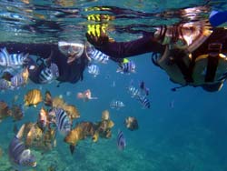 こんにちはJackです^^☆午後からは遠距離恋愛中の仲良しな可愛らしいカップルのお2人です*^^*最初から2人とも上手で、スイスイ泳いでましたね!!洞窟も、とってもキレイでした!!2人とも、とっても上手だったので写真もたくさん撮れましたぁ!!餌付けもたくさんして、たくさん泳いできましたね^^♪途中コクテンフグがいたので一緒に写真を撮ったりできましたぁ☆かなちゃんがズット笑顔でしたね^^最後に感想載せます!! ゆうき君:普通のシュノーケリングだと見られないようなスポットに案内して頂けて、とてもキレイで良かったです。エサやりなど、ちょっとしたイベントもあって、すごく楽しめました。ありがとうございました。 かなちゃん:とてもキレイで感動多でした!!インストラクターの方が、とても良かったです。 |