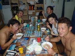 はいさい!11月11日チンアナゴの日まで4日です。そんなチンアナゴの日4日前なので本日はお鍋です。とその前に、深い所嫌いで女の子大好きなかせさんとただいまダイバー修行中のせんちゃんです。ビーチでまったりです。中性浮力を気にしながら、せんちゃんとっても上手くなって着ました。まずはフィンが早く履けるようになりましたね。少しずつかっこいいダイバーになってきてますよ~~!!でかせさんはいつもどうり、まったり浅場でお花畑を満喫です。カマスの群れが300匹ほど群れていてとってもきれいでした。がっつりと3本もぐりましたよ。なので今日は、なべです。せんちゃんおすすめのレタスしゃぶしゃぶです。豚肉とレタスのシンプルな鍋ですがとってもこれが美味しいのです。あっさりしていてパクパクいけます。で、締めは、せんちゃんのお土産のサリ麺です。韓国の麺らしく鍋の閉めにはまじ美味しかったです。10袋近くあったサリ麺ですが・・・・すべて完売です。やばいです。これからの鍋の時期、締めはサリ麺できまりだね!今日も美味しく・・・いやいやダイビング楽しくすごせました。せんちゃんごちそうさまでした。 |