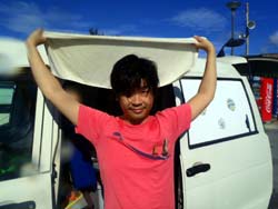 どうも、タクです。今日は砂辺でFUNダイビング担当です♪加瀬さん、せんじさんとまったりしてきました☆海況はあまり良くはなかったですが、エントリーとエキジットに気をつけて、いざ!!メインはやっぱカマス!!大群!!ずっと居てくれたらどんだけ嬉しいことか・・・(涙)そんなカマスが400匹ほどキレイに並んだ壁を見つつ、お花畑へ。ウネリがあり、ユラユラと揺られながらの1本目でした。2本目ではエントリーしてすぐに、巨大タコにはがい締めにされてる某ショップのI先輩を発見!!笑)HELPを出してたので急いでタコをはがしました・・・が!なかなか外れず(笑)カップラーメンが出来上がるくらいの時間の間、ひたすらタコ!!!!笑)いやもうちょっと長かったかな?ちょっと麺がのびたくらいにやっとタコから脱出!!タコもかなり疲れたようで、しばらくじっと動かなかったです。そんなドタバタした2本目でした(笑)三本目は、じっくり生物探し。右から左へゆっくり流れてグルクマやニモ、ツユベラ、オジサン、ハマクマノミ、その他もろもろ。のんびり三本、お疲れ様でした(^^)夜はサンセット見ながら、かり~~~~~~~♪♪ |