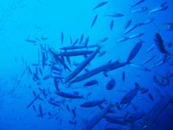 はいさい!11月11日は、チンアナゴの日です。なので今日は、博士とマンツーマンでゴリチョです。ワイドレンズを持ったドライスーツを着た博士はとっても暖かそうなので、小さな小さなイカを探しに行きます。寒さ知らずのドライの博士は、震える俺を横目にトイレを我慢するのに苦労していました。ワイドのレンズではカマスの群れはいいけど、小さな小さなタツノハトコやウミシダに隠れているエビなどは、とっても苦労して写真をとっていました。そんな11月11日チンアナゴの日のゴリチョなのでした。おわり! |