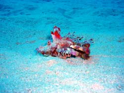 はいはーい!ども、りょーけんでっす。今日はFUNダイビングに行って来ました~!今回一緒に潜ってきたのは本日最終日のせんちゃん!マンツーで砂辺へ入って来ました。右の砂地の方へ足を伸ばしてみると小さい子供のワカヨウジがフラフラと波に揺られてましたね!岩のくぼみの中にいるアカククリの幼魚もしばらく滞在してくれそうな感じでした。お花畑の上からドロップを見下ろしているとドロップ沿いに集合しているカマスの群れ見れや、小さくて可愛いタコを見たりしてきました~。続いての2本目は耳の調子が悪くなったので終了して着ビーチの黒田パパ・ママとまた同じ感じのコースをたどってもうちょっと奥まで行って見ました!ワカヨウジは時間が経っても同じ場所でユラユラしてくれてました。奥のほうへ行ってみるとヘコアユの群れやハナミノカサゴやキリンミノが居たり、右ドロップの終わりの所では大量のカマスが!群れの中へ突っ込んでみると周りをグルグル・・・!?カマストルネードすごかったですね(笑)お花畑の上でゆっくり泳いでいるとまたタコが。今回はかなりのビッグサイズ!コレ1匹で4人前のタコ刺しが・・・。もちろんリリースしましたよ(笑)センちゃんは耳を治してまた次回!黒田パパ・ママは明日のケラマを楽しんで~!! |