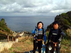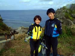 10:30青の洞窟ダイビング☆出堀さん ヒロミチさん:今日は初めての真栄田でのダイビング。天気も良く魚の多さにビックリ。青の洞窟がとてもきれいでまた来たいゼッタイ。 いづみさん:久しぶりに真栄田岬でダイビングできました。インストラクターの方も親切でとても安心してダイビング出来ました。天気もとてもよくてお魚も沢山見ることができました。青の洞窟もキレイでした。また来ます。 |