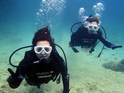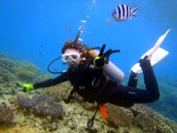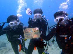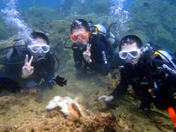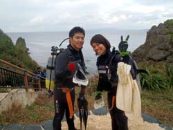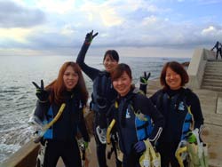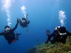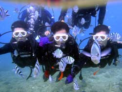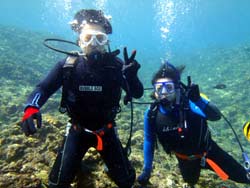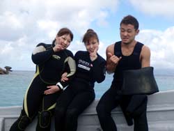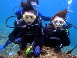 タイチさん☆楽しかったです!初めてで緊張しましたけど、親切に教えて頂いてよかったです!また来ます! ツヨシさん☆陸上とは別世界ですごい感動しました。耳抜きをマスターしてぜひまた潜りたいです。また会いましょう。 |