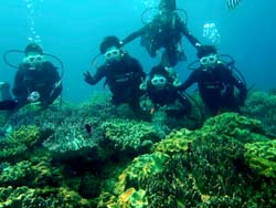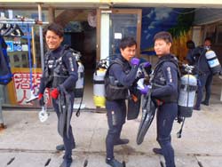10:30サンゴ体験ダイビング☆城島さん ◎コメント 基樹:今日は初めてのダイビングをしてとても楽しかったです。今日はありがとうございました。 祥希:気持ち悪くなって死にそうになってしまってあまりよく解らないまま終わってしまって残念だったので来年沖縄に来る時は時間があれば絶対リベンジしたいです。 聖祥:今回初めてのダイビイングを痩せてもうことができて楽しかったです。初めての体験で人生で楽しい思い出が出来ました。またいずれ来たいと思います。今日はありがとうございました。 奨馬:今日はとてもいい体験が出来てよかったです。自分にとって初めての経験で一生忘れない体験になりました。今日はありがとうございました。とても楽しかったです! |