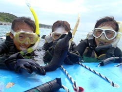 15時30 シュノーケル まいちゃん:昨日も天気悪くて沖縄にきた実感がわかなかったけど、今日海に入れてニモとか見れたので沖縄にきた実感がわきました。ありがとうございました。 えりこちゃん:シュノーケリングを初めてして感動しました!!!!きれいな魚を近くで生で見られて良かったです!!ありがとうございました!! あみちゃん:はじめ海に入ったときは波があるので怖かったのですが、先に進むに連れて魚を近くで見る事ができたりナマコやヒトデに触れることができて楽しかったです!また沖縄に来た時はぜひしたいです。ありがとうございました! あかねちゃん:はじめてのシュノーケリング楽しかったです!!ナマコがこわかったけど、ニモなどたくさんのお魚を間近で見ることができて良い経験ができました。ありがとうございました! |