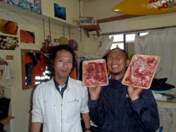どうも、タクです。今日は博士と一緒に瀬良垣へ行ってきました♪天気は果てしなく曇り空、吹き荒れる北風、打ち付ける横なぶりの雨、男2人でゲラゲラ笑いながら港へ到着~♪さて準備開始ってときに、事件が起きました。博士のドライスーツの中に、まさかの水が!!!べっちゃり濡れてたわけではなく、左足のブーツのところだけに結構な水が・・・。昨日いつどこでどのようにして入ったのか??古畑任三郎ばりに推理してると、おっと出港時間です(笑)1本目は、ナカユクイ。透明度が心配でしたが、思ったより見えてました(^^)魚網でゆっくり生物探し。しかし今回の滞在期間中で見た生物ばっかり見つかる奇跡(笑)何を隠そう博士は今回、オール砂地ポイント。2本目もクロスラインで砂地尽くし!でも色々見つかりましたよ~。ヤシャハゼ、ヒメオニオコゼ、トウアカクマノミ、休憩中のサザナミフグ、ソデカラッパなどなど。写真はそんなにこだわらず(笑)さくっと撮って今日は2本で終了☆ドライスーツには水は入らなかったので、穴が開いたわけではない!つまり、犯人はお店にいる!!!笑)帰って事情聴取。するとあっけなく犯人発見(笑)お店に来るとわかりますよ~。さて、今日は博士さんから頂いた「松坂牛」ですき焼きです(^^)かり~~~~~~~ |
