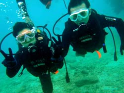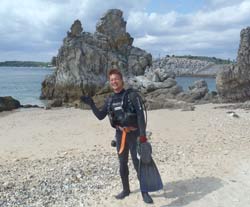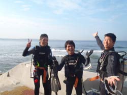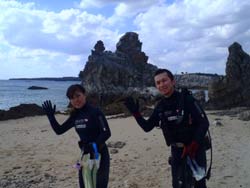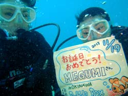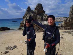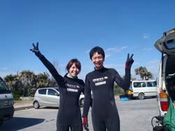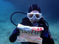 はいさい~^-^ひろあきです!!!ここ最近の沖縄は朝と夕方はめっきり冷え込み、サンダルから靴へ履き替えるようになりました^-^笑 海の中も水温が下がりはじめましたが、透明度がどこのポイントもグングン上がっていますよ~♪さてさて!!僕はオープンウオーター講習を担当していたんですが、無事に認定する事ができました☆遊びに来てくれたのは九州よりマキちゃん!! 初日はスキルに戸惑いながらの講習でしたがなんとか気合いを入れてスキル修得するために頑張ってきました☆本数を重ねる事に水中での体の動かし方や泳ぎ方もだんだん上手になっていきオープンウオーター講習「最大の壁」、マスク脱着にも果敢に挑戦!!苦戦するかな~っと思ったけどあっさりクリアして見事オープンウオーターダイバー合格です♪おめでと~~~☆☆☆☆☆パフパフパフパフ~~~^-^☆☆☆☆☆これからも是非ダイビングを続けて楽しんでくださいね!!^-^ |