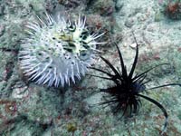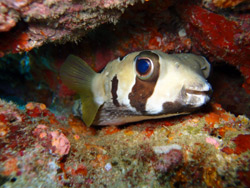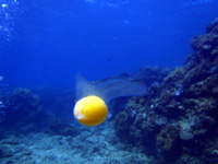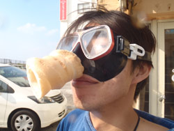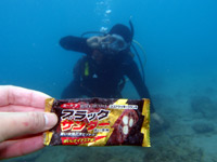どうも、タクです。今日は240と一緒にスナベでFUNダイビングです。当ても無く、フラフラとフリーダムダイビングしてきました(笑)NEWスーツでほかほかな240、前回のスーツとは大違い(笑)砂地で色々探したり、割れたブイを拾って頭にかぶると、絶妙に似合う240(笑)2本目には、マスクにお麩をセメダインで固めて付けて、餌付けをしようじゃないかってことに!!エントリーして、しばらくは水面を背面移動。いざ潜降開始!!って意気込んでマスクを付けて、顔が水に付いたとたんに、お麩がペロンって取れました(笑笑笑)そんなくだらないことをするのが大好きで、夜も下らない話でゲラゲラ笑う二人でしたとさ♪ |