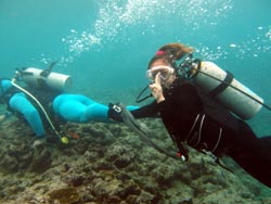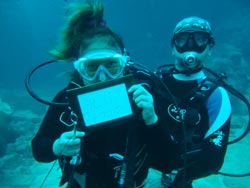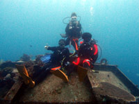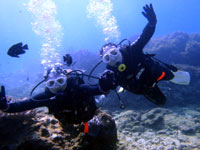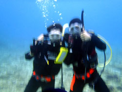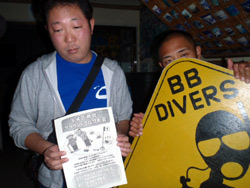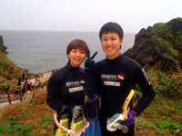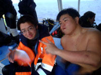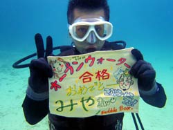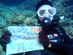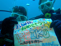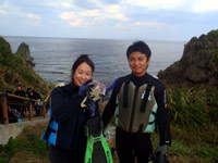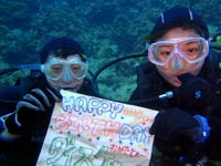 10時半 若松さん ヨシユキさん☆安心ガイドのおかげで、楽しいダイビング体験ができました。初級者の私も、今までにないほど色んな海の生物に出会えました。TAKUちゃんありがとう! ヨシコさん☆久し振りのダイビングにワクワクしました。海の透明度最高!!TAKUちゃんの一発芸神秘的でした。また来ます。 |