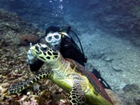 どうも、タクです。今日は海況バツグン、天気イマイチの中、アベさんとマンツーじっくりみっちりカメラダイビングです。ポイントはオーバーヘッドロック、ナカユクイです。まずはオーバーヘッドロックへ。ここでは、右の写真のアオウミガメさんに出会えました。最近棲みついていて、ここの主かと思わせるほどのデカさで、お供のコバンザメを連れて、アベさんの目の前を豪快に通過していきました(汗)もうスレッスレでした(笑)ハナゴンベも3~4匹いたので紹介すると・・・アベさんのカメラ夢中スイッチON(笑)内地のほうではほとんど見れない魚ですからネ♪じっくり撮ってもらってから、ハナビラクマノミやウミシダに隠れるコマチテッポウエビなど、これまたスイッチ入りまして、じっくりみっちり撮ってもらいました(^^)一時間近く潜ってからの二本目はナカユクイへ。魚網へ行く途中で、イソギンチャクエビやオドリカクレエビを発見・・・・モチのロンでスイッチON(笑)イソコンペイトウガニはでかかったですなー!!!あのサイズは初でした(驚)締めはニモを連写。ここでも一時間近く潜って、がっつり楽しめましたね♪二本で終了して、なかむらそばでお昼☆帰りは、今頃になって顔を出した太陽の日を浴びながらドライブしつつ、アベさんは睡魔と闘いつつ、のんびり帰りましたとさ♪(笑) |