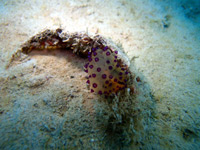 はいはーい!ども、りょーけんでっす。今日はFUNダイビングに行って来ました~!今回一緒に潜ったのはまさくん、とみー、しおP、あべさんの4名!このメンバーでレッドビーチへ行って来ました~。透明度はいつもの事ですが、頑張ってマクロ系生物探し!先日入った時に発見したニシキフウライウオをメインに探してみましたが、今回は発見できず・・・。防波堤の先の方ではマダライロウミウシを見つけてきました~。帰り道の砂地ではワモンキセワタが大量発生!10個体ぐらいが一か所に集まってました。しかもデカイ!砂地をじっと見ていたりするとミナミウシノシタも発見できたりしましたね!いよいよ年末ですね。明日もダイビングを楽しんじゃいましょうか~!! |