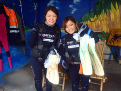 9:00 B コースx2 ☆ 奥出さん かーちん:本当に楽しかったです♡丁寧に説明してくれたのでとても分かりやすくてお兄さん達も優しく教えてくれたのでさいこうでした!また沖縄でダイビングするときわここ使いますー♡ありがとうございました(^-^) あっすー:初めてダイビングをしました。練習の時は不安でしたが、海の中にはいってみるとキレイやし、魚もいっぱいいて感動しました☆ミ海の中で説明して下っさたから、とても分かりやすく楽しめました(*^ω^*)今回だけに限らず、また沖縄に来てダイビングしたいです♡ありがとうございました。 |