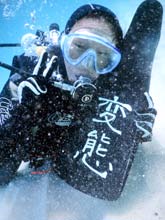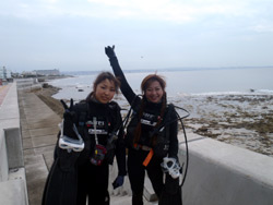 さてさて今年も後二日です。そんな日に遊びに来てくれたのは 泉さんとあっちゃんです。泉さんは、来る前々日に、捻挫!!笑!笑っちゃいけません。で、年末年越しダイブにそなえ、養生を、そこであっちゃんとドライスーツ講習です。わいちゃんも参戦でのんびりドライの使い方を確認しながらのファンダイブです。わいちゃんものんびりついてきてくれました。イソコンペイトーカニさんなどを探しながらドライスーツの空気の美味い抜き方を研究です。何度か失敗もしましたが、とってもうまくなってきました。コツもつかんだようですね!この姿を早くいずみさんに見さていものですが・・・・な、なんと2本目にか、カメラ紛失です。エントリーしてリーフ下ですぐに手からなくなったようです。捜索です。がっつり捜索です。かなり捜索です。おもりが付いていないとの事なので水面を眺める捜索です。で!!!見つかりませんでした。がっくりです。あっちゃんがっくりです。いずみさんにおこられる姿が目に浮かびます・・・落ち込むあっちゃんの巻きでしたが。。。。なんんと次の日近くのお店のイントラが見つけてくれていました。お店の写真が写っていたのですぐに持ってきてくれました。良かったです。本当に良かったです。みなさん、とりあえず一枚お店の名前の入った写真を撮っておきましょう!!そしてら もしかしてもしかして帰ってくるかもですよ!笑!!でもでもドライも美味く使いこなせるようになり、カメラも帰ってきたので良かったです。さて、わいちゃん年越しナイトダイブ100本目を目指して楽しみましょう!!! |