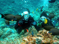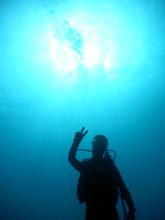 9:00青の洞窟体験ダイビング☆喜田さん ◎コメント こんな間近に魚と接することが出来て感動しました。自分が水族館の中にいるようだった。最初潜るのが緊張したけど慣れたので良かった。 海の中最高でした!! |
