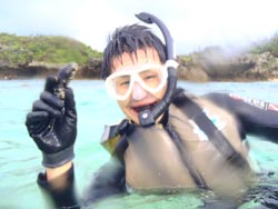 OWラスト+FUN☆キョンくん・のだくん のだ氏:初めてのダイビングでしたがヒロさんの丁寧なご指導のおかげで楽しく潜ることができました。沖のダイビングもタクさんの面白い案内のおかげで、とっても楽しかったです。ダイビング以外にも一緒に飲んだりクリパをしたりと、とても楽しい時間を過ごせました。ありがとうございました。次に沖縄に来た時も宜しくお願いします!! きょん君:3日間、めっっっっっっっっっっっっちゃ楽しかったです。タクさんリョウケンさんはじめスタッフの方々ありがとうございました。絶対また来ます。次回は慶良間へ。。。 |