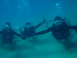 15時30開催 エンジョイ体験ダイビング 内藤さんのコメントは!! あやかちゃん:キレイな魚たちが目の前にたくさんいて感動しました。もっともっと泳ぎたかったです。 りさちゃん:あんなに間近で様々な魚を見る事が出来て、とても貴重な体験でした。海の中は透明でとてもキレイで良かったです。 ゆみかちゃん:たくさんの魚達が泳いでいる姿が、とても可愛かったし、あんなに近くで見たのは初めてだったので感動しました。 みさちゃん:海の中で開放された気持ちになって楽しかったです!ニモの赤ちゃんもいて本当に可愛かったです。スタッフの方々も優しくて安心して初ダイビングできました。ありがとうございました。 |
