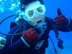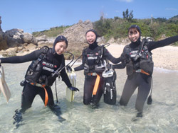 10時半 体験ダイビング 大島 様 本番が近付くにつれて、恐怖で顔はひきつってしまいましたが・・・とにかくちょーーーー楽しかったです!!!緊張をうまくほぐしてもらえたおかげで、沖縄のキレイな海を満喫することができました!洞窟やばかったです・・・カウントダウンの前に振り返らなくて良かった(笑)海に慣れてからは時間もあっという間でした。魚に指をかまれたのがいい思い出です(^^)沖縄旅行のメインイベント大成功でした!ありがとうございました!!! |