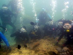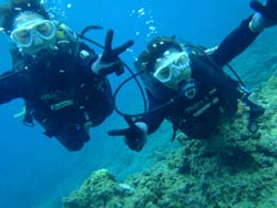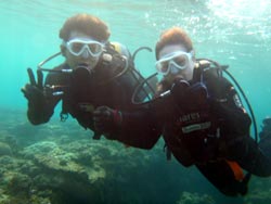 8時から2回のダイビングを楽しんだいずみさん達のコメントです。 久しぶりのダイビングでしたがたくさんの魚やイソギンチャクをゆっくり見れて楽しかったです。一つ一つ丁寧に説明してくださり 海への関心が高まりました。ありがとうございました。 初めてのダイビングで前日も緊張しっぱなしでしたが、初めての人にも解りやすく、説明して頂き安心してダイビングを楽しむことができました。海の生き物をこんなにも真近かで見た事は今まで一度もなかたので、わくわくの連続でした。またダイビングをして私も連れのようにライセンスをとれるようになりたいなぁと思いました。とても楽しかったです。ありがとうございました。 |