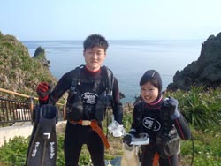 13時 体験ダイビング 古川 様 祥史さん:手取り足取りありがとうございました。貴重な体験が出来ました。ニモにも出会えてよかったです。 史佳さん:最初は怖かったですが息継ぎが出来るようになったら、あとはずっと楽しかったです。またチャレンジしてみたいです。本当にありがとうございました。 |