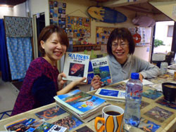 はいさい!3年程ぶりに遊びに来てくれた大阪の石田さんファミリーです。みんなのコメントは とっても楽しかったです。初めてでしたが優しいエスコートして頂きありがとうございました。純子 楽しかったよ~~ヨロシクーでした。は よかった よかったどうしても浮いてしまいます。またきまーす。かーさん 今日は一日ありがとうございました。とっても楽しい一日になりました!!!朱里 朝めし抜きは良くないですよ!気分が悪くなります。3年ぶりのダイビング、ジャック。たくちゃん、しおんくん、素晴らしいエスコートもあり楽しく出来ました。ありがとうございました。とーさん 3年ぶりのダイビングでしたがなかなか潜り方を覚えていました。体が覚えている物ですね。久々なこともあるだろうけどとても楽しく潜れました。相変わらずおもしろい人達ばかりでとても楽しかったです。また夏頃に来たいと思います。ありがとうございました。 |