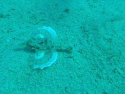 はいさい!!ひろあきです!!今日は朝から太陽ギラギラとまではいきませんが快晴!!久しぶりにカラッと晴れてくれました。砂辺はやっと落ち着いてダイビング日和の海になりました。今日は久しぶりに遊びに来てくれた埼玉のめぐちゃんと潜ってきました。同僚の方が説明の間に潜る!!という強行スケジュールでしたが。(笑)それには理由があるんです!!ダイビングを初めて8年~9年目になるめぐちゃんが100本達成の記念ダイビングを迎えるために!!マンツーマンはちょいと寂しいですが気合いを入れて水中案内してきました。カマスがわんさか群れてる浅瀬を通り過ぎドロップ沿いをフワフワ泳いでいると南国の天使ムラサキウミコチョウを発見!!ちょっと泳いでいる所が見たいな~っと思って「ヒラっと」水流を与え、岩肌から飛ばされたコチョウくんはすぐさま体よりも大きな羽を広げてパタパタと一生懸命泳いでいました!!なんとも感動的な瞬間!!キレイ!!最高!!でもちゃんとこんな感動を与えてくれたコチョウくんにはまた元の岩肌に戻って頂きました^-^ありがとう。エキジット後すぐさま体験の同僚の方に合流すべくエントリー!!今度はみんなで100本の写真を撮れてよかったね。またいつでも遊びに来てください。 |