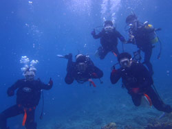 青の洞窟 体験ダイビング 村瀬さん:魚にエサをやることができて楽しかった。泳ぎやすくしてくださり、ありがとうございました。 木村さん:水槽の中を泳いでいるみたいで、とても楽しかったです。ありがとうございました。 麦田さん:人生初のダイビングということで不安もありましたがインストラクターさんが丁寧に教えて下さり、貴重な経験ができました。ありがとうございました!! 竹内さん:はじめてのダイビングで緊張しましたが、段々慣れてきてキレイな海を楽しむことが出来ました。いろいろとサポートして頂き、ありがとうございました。 |