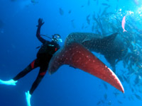 はいさい!!ひろあきです!今日は久しぶりにジンベエザメに会いに行ってきましたよ~!!一緒に潜ってくれたゲストは今回ダイビング合宿で遊びに来てくれているイケダさんとマンツーマンです!!水中はほぼ貸切状態で楽しめました^-^う~んやっぱり魚類最大の生物ジンベエくんはでかいです!!圧倒的な迫力で僕達に近付いてくれるサービス満点な泳ぎを披露してくれました♪そして周りで泳いでいるグルクンやツムブリもいつも以上に数が多くて見応えがありました。ジンベエダイブに満足したあとは、スナベに戻って3本目!!のんびり浅場をウミウシを探しながら泳いでいるとやっぱり時期ですね。10種類近くのウミウシが見れましたよ~^-^明日はボートダイブ!!楽チンダイブで楽しんでくださいね^-^ |