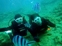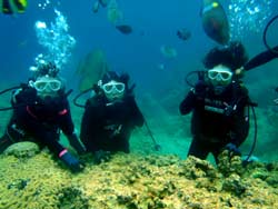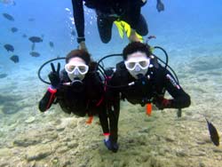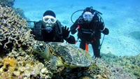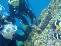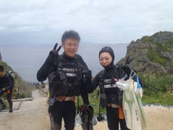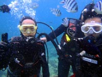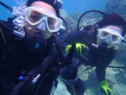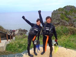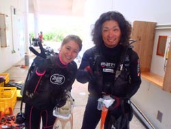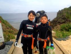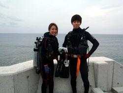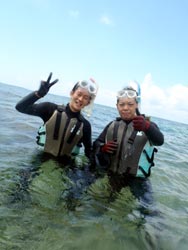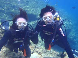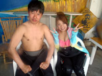 みねちん:久しぶりのダイビング、とってもとっても楽しかったです。もっと潜りたいから、次はライセンス取るー!!ありがとうございました。 ぱく:ダイビング楽しかった!!!潜る前はドキドキだったけどあっという間だったし、ホントちょーたのしかった!!また夏に来ます。 |