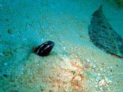 はいはーい!ども、りょーけんでっす。今日はFUNダイビングに行ってきました~。今回一緒に潜ったのはまずは240!1本目はマンツーで砂辺の右下の砂地をゆっくりと彷徨ってきました~。コンディションバツグンで透明度は20mくらい有ってキレイでしたね!クロスジリュウグウやゾウゲイロなどの定番ウミウシをちょいちょい見つけながらチーズケーキまで行ってみると根の周辺でゴンズイの群れと遭遇!スレートでちょっと群れをカットして群れの数を増やしてみたり、浅場に戻ってイソコンペイトウガニを探してみましたが今回は空振り・・・。続いての2本目は240の職場の同僚みねちんとぱく。それと仕事終わりのひとしくんが合流してエントリー!左側のドロップを浅めに生物を探しながら進んでみました~。ここ最近やたらとよく見る大きなコブシメや餌場を探して移動をしているグルクマの群れを見れましたね!前半ドキドキだったみねちんとぱくもドロップ沿いを泳ぐ頃には普通に水中を楽しんで泳いでました~。そしてラストの3本目は240とひとしくんで左下のハゼ場を探索してみました!定番のヤシャハゼは意外と近付いても引っ込まない!だんだんと人馴れしていい感じですね(笑)ただ、最近増え始めたヒレナガネジリンボウは警戒心MAX・・・。なかなか近寄れない(汗)ちょっと珍しいウミウシのコモンウミウシやなかなかに巨大なメレンゲウミウシなんかも見れました~。そしてラストはタコ!それもキングサイズでしたね。そんなもん見つけたら一緒に遊ぶしかない!!と言う事で記念撮影してきちゃいました(笑)2人とも今日がラストダイブデイでしたね~。また次回暖かくなったら潜りましょうか~!!