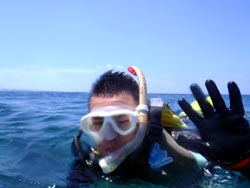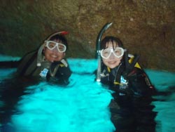 10時半 青の洞窟体験ダイビング 藤原さん 初めてのダイビングだったので始まった時は、すっごく緊張しました。上手に耳抜きできなくてノロノロしてしまったけど2人だけだったので、あわてず出来ました。で、洞窟内は、めっちゃキレイで感動して、魚も光でキラキラしてキレイで、すっごいすっごいすっごい楽しかったです。また沖縄来たらバブルボックスさんでダイビングしたいです!! |