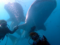 ジンベイザメ体験ダイビングのコメントは!! けんけん:最初は恐怖しかなかったけど、いざ潜るとなると何とかいけました(笑)しっかりインストラクターの方の説明もあり、安心して楽しく潜れました!!海がすごすぎ!ジンベイでかすぎ!楽しさ100%!!すぐにまた潜りたいです。本当にありがとうございました。 あいちゃん:始めての体験ダイビングでドキドキ不安でいっぱいでしたが、インストラクターの方が優しく分かり易くてすごく良かったです。ジンベイちゃんとも会えて感動しました。また来たいです。 |
