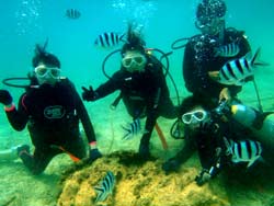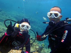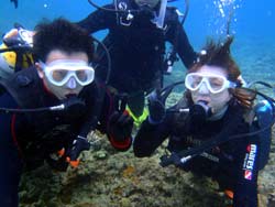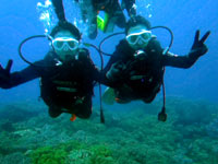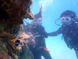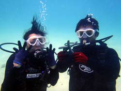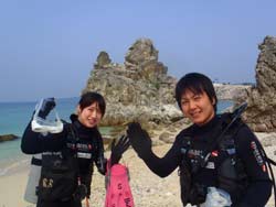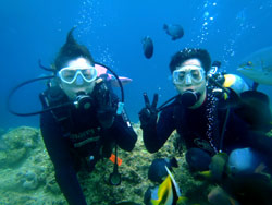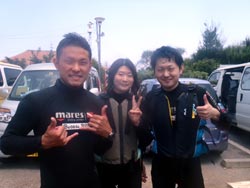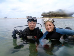 10時半~サンゴコース体験ダイビング 岩波さん 和子さん:インストラクターの方が、とても頼りになってなんの不安もなく楽しくダイビングができました。思ったより熱帯魚の種類もがずが多くとてもリフレッシュ出来ました。ありがとうございました。 昇さん:約15年振りのDivingでした。昔を思い出しました。今日教えてくれたインストラクターGOODでした!!また来たいです。 |