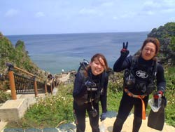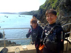 13:00~ 青の洞窟体験ダイビング(はまはた様) ひろしさん&るりこさん:とてもたのしかったです。お姉さんの力強さに惚れてしまいそうでした。また次回来る時もお願いしま~~~す!本当にありがとうございました。 |