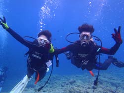 13:00~サンゴ礁体験ダイビング 鷺坂さん 鷺坂さん:初めてのダイビングで不安でしたが丁寧に教えてくださり、とても安心する事が出来ました。一発芸も楽しかったです。 須藤さん:綺麗な魚やサンゴを見れてとても楽しかったです。とても優しく教えて頂いたので不安なく潜る事が出来ました。次はライセンスをとってまたきます。 |