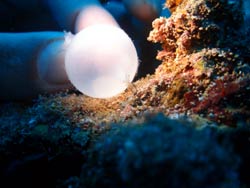 はいはーい!ども、りょーけんでっす。今日はFUNダイビングに行ってきました~。今回一緒に潜ったのは久しぶりにやってきたやずさん!マンツーで砂辺の海を堪能してきました~。1本目はNO、1へエントリー!ここ最近定住してるコブシメを見に行ったらなんと今日は10匹のコブシメが大集合!こんなに集まってるのは初めてですね~。そのまま左の深場へ移動して今度は卵を観察!よーく見てるとコロコロと白玉が出てきましたよ(笑)中をライトで照らしてみるとちゃんとコブシメの赤ちゃんが確認できました!そのまま深場で生物を探していると岩の下にヒトヅラハリセンボンを発見。こいつ砂辺にも出てくるんですね~。2本目は北側に移動してモンローでエントリー!遺跡を目指して泳ぎましたが、うーん・・・。どこだっけ???ようやくそれっぽい所に着きましたが、少し違うような・・・?まぁ、そのままNO、1を目指して泳いで久しぶりに砂辺みにミニドリームホールへ!入ってみるとやっぱり人が入ってなかったのでイセエビが顔を出してましたね。入口の所にはオイランヨウジが気持ち良さそうにユラユラと揺れてました~!お昼休憩を挟んでラストの3本目はUFOへ。先日行った時はいなかったカマスは今回はそこそこの数集まってましたね!今日は噴出していた謎の液体のおかげでしばらくじーっとしてるだけでぬくぬくになりました~。体が温まった所で2機目へ移動!空気を溜めて顔を上げてみようとしましたが、エアーが足りない・・・(汗)危うくエア切れになるところでした・・・。帰り道で私は見てませんがやずさんが変なものを発見。何かと言うとカッパが自転車に乗ってE・T風に登場したと言うのですよ。ウソだと思われないために一応証拠写真を・・・(笑)明日は最終日!思いっきり楽しんできてください!! |